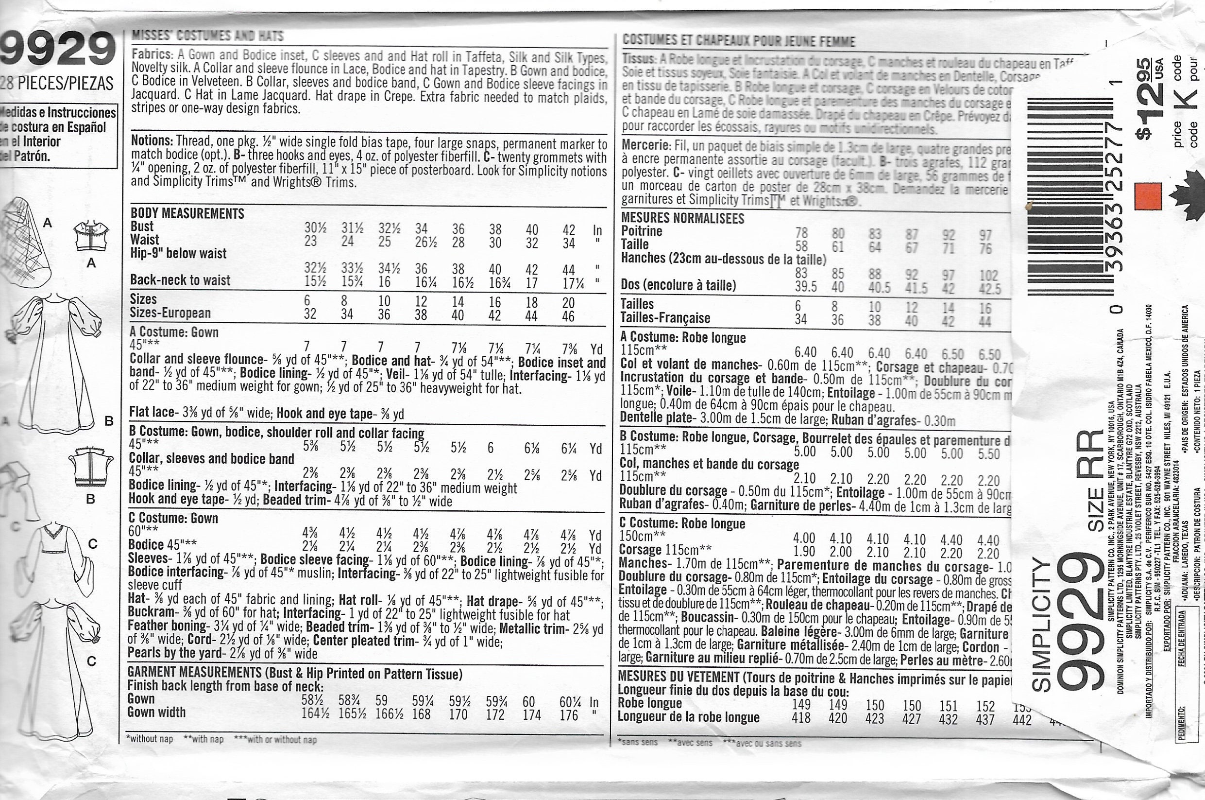 S929 Sewing Pattern Misses Renaissance Costumes Dresses Etsy